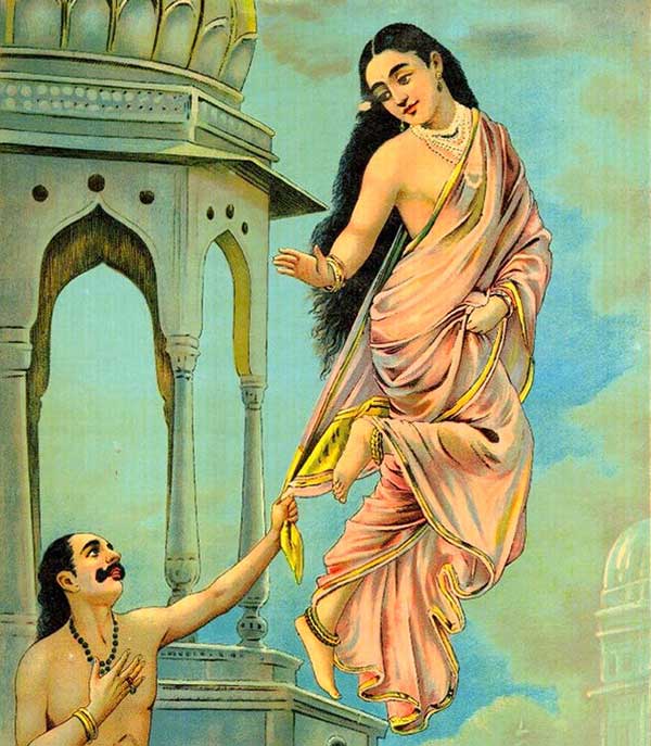 देवो के छल के कारण स्वर्ग की उर्वशी ने राजा पुरुरवा को बिना वस्त्र के देख लिया । जिस वजह से उसी वक्त उर्वशी को र्स्वगलोक लौटना पङा और अपने प्रेम से बिछङना पङा ।