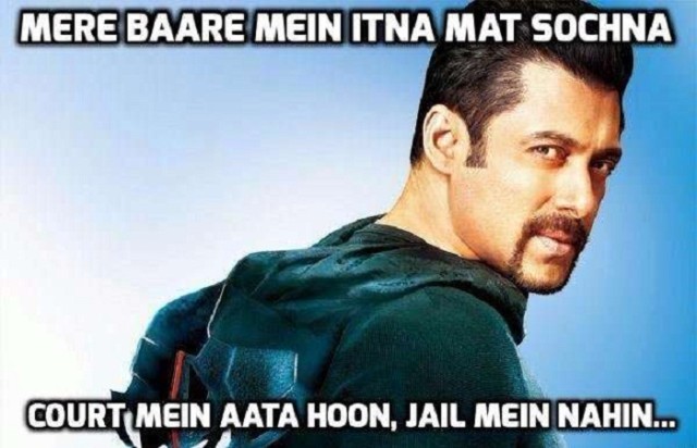 1- हाल ही में जब सलमान ख़ान को जेल और फिर बेल मिली तो ये मीम सोशल मीडिया पर बड़ी ही तेज़ी से वायरल हुई, सलमान के डायलॉग को ही ट्विस्ट करके इन्होने ये बना डाला।