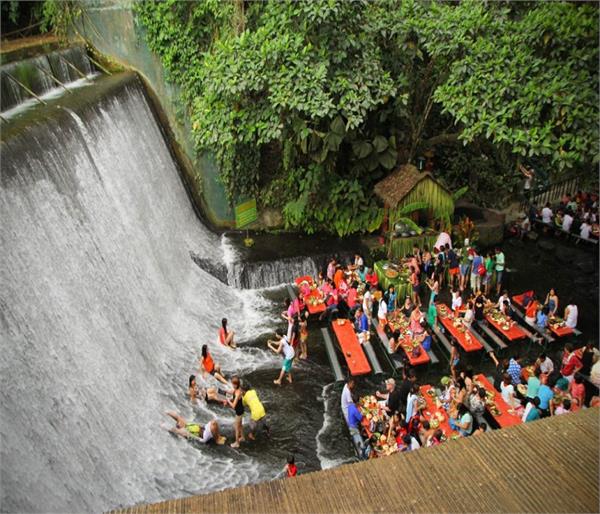 फिलीपींस में एक रेस्टोरेंट हैं जहां लोग पानी में बैठकर खाना खाते हैँ। यह Villa Escudero Resort में बना है। यह रेस्टोरेंट वाटर फॉल के बीचोंबीच बना है। इसलिए यहां आने वाले लोग इस रेस्टोरेंट में खाना जरूर खाते हैं। इस रेस्टोरेंट में आने वाले लोग पानी में आधे डूबकर खाने का मजा लेते हैं। अब आप अंदाजा लगा सकते हैं कि पानी आधे डूबकर सीफूड कितना मजा देता होगा। यह रेस्टोरेंट पूरी तरह से नारियल के पेड़ों के बीच बना है और यहां कुर्सियां और टेबल भी बांस से बने हैं। अगर आप बाहर जाने का प्लान बना रहे हैं तो एक बार इस रेस्टोरेंट में जरूर खाना खाकर आएं।