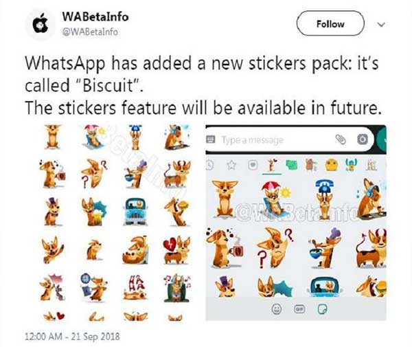 दरअसल WhatsApp chat जल्द ही अपने चैटिंग के तरीके में कुछ बदलाव करने वाला है, जिसके मुताबिक अब WhatsApp पर भी स्टीकर्स के जरिए बात की जा सकेगी। बीते कुछ महींनेे से WhatsApp कंपनी इस पर काम कर रही है। WABetainfo की रिपोर्ट की माने तो WhatsApp पर जल्द ही फेसबुक के स्टीकर का सपोर्ट मिल सकता है। फेसबुक और WhatsApp के बीच के इस समझौते को लेकर पहले यह कयास लगाये जा रहे थे कि अब WhatsApp पर फेसबुक के स्टीकर का सपोर्ट मिलेगा, लोकिन इस मामले में जारी एक नई रिपोर्ट से यह खुलासा हुआ है कि इस पर थर्ड पार्टी स्टीकर का भी सपोर्ट भविष्य में मिल सकता है। जिसका बाद यह सही तरीके से काम करने लगेगा। फिलहाल एक रिपोर्ट के मुताबिक WhatsApp chat के इस फीचर पर रोक लगा दी गई है, जिसके कारण कई यूजर्स इसके स्लो काम करने को लेकर लगातार शिकायत भी कर रहे हैं।