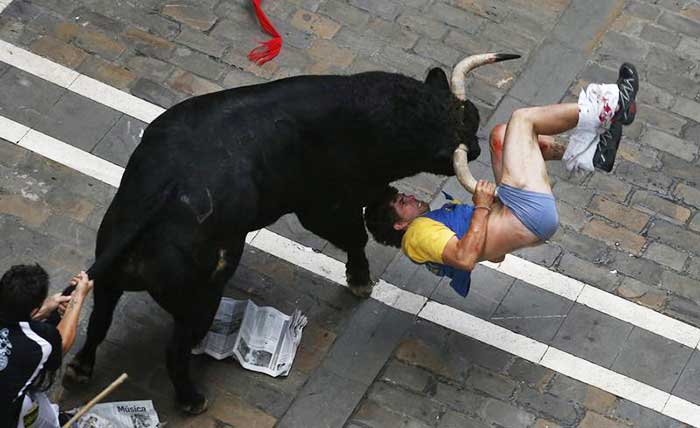 15. सांड से लड़ना उतना आसान नहीं होता है. यह तस्वीर दिखा रही है कि सांड किस तरह से इंसान को हवा में उछाल सकता है.