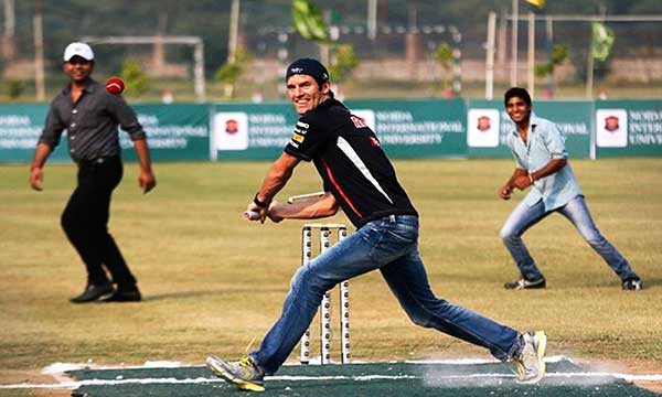 2011 में जब भारत ने पहली बार एफ-1 रेस का आयोजन किया तो कई दिग्गज ड्राइवरों ने इसमें हिस्सा लिया। जहां भारत में एफ-1 का क्रेज छाया हुआ था, वहीं क्रिकेट प्रशंसकों के जोश में कोई कमी नहीं आई। क्योंकि रेड बुल के ड्राइवर मार्क वेबर का क्रिकेट बिना खेले इस देश से जाने का मन नहीं हुआ। ऑस्ट्रेलियाई ड्राइवर ने नोएडा अंतरराष्ट्रीय यूनिवर्सिटी में गौतम गंभीर की गेंदों का सामना किया और विश्व को दिखाया कि कंगारू खिलाड़ी क्रिकेट में बहुत दम-खम रखते हैं। मार्क वेबर को खेलते देख प्रशंसकों ने खूब तालियां बजाकर माहौल खुशनुमा बना दिया।