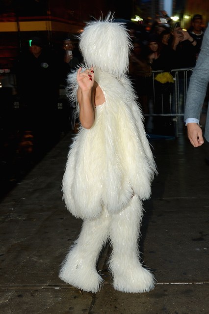 Yes, that’s Lady Gaga! Why oh why? Why you are hiding your pretty face behind this trashy outfit?