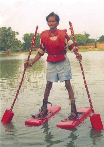 Dwarka Prasad, who belongs from Mirzapur, Uttar Pradesh, is known for designing special water walking shoes and oars out of thermocol so that one can skate on water bodies.We should all applaud for this amazing innovation as there are few alternatives for crossing water bodies.