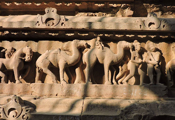 The art and sculpture of Khajuraho temple is divided into five different parts a number of statues carved on the temple walls are niche statues, while second part is showing the animals and their amenities, third part are the images of apsaras, forth part is the “Cult”, describing their lifestyle of the society, women rubbing her hair after bath, children playing around and many more, fifth the deities.