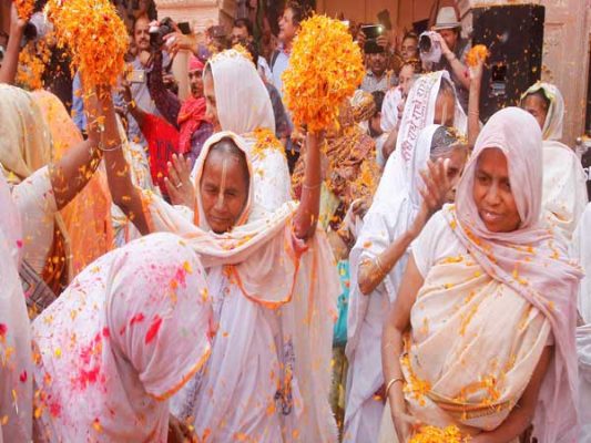 Widows are seen to free themselves from the worldly complications and difficulties when they are seen playing with colors in the Gopinath temple.