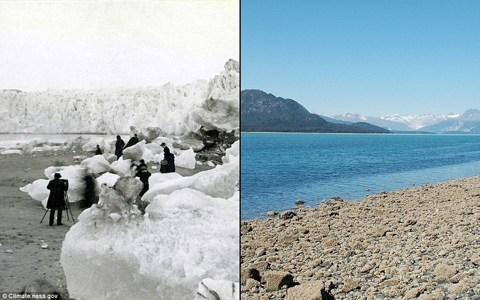 1… The glacier in Alaska is melting away drastically. The lake is seen on the left in the 1890s and the right image was captured in 2005. This rapid changes in landscapes is spine chilling and it’s restoration is the need of the hour.