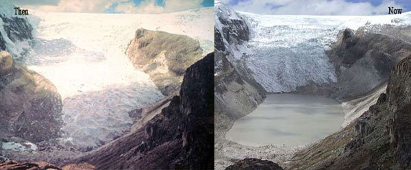 6… The image shows how the Qori Kalis Glacier in Peru melted in away. The right image was took in the year 1978 and the other one 2011.