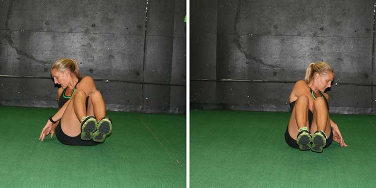 While doing a Russian twist, begin in a seated position with knees bended and flat feet. Bend back slightly with a strong straight back and get into a relaxing position, contracting your ab muscles. Then, stretch your arms out in front of you and twist the torso from both sides.