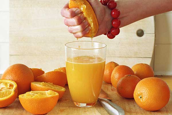 Fruit juices, especially citrus ones are highly acidic for the body and should be avoided at night. Also, juices give the body a rush of simple sugars without any fiber which might cause the body to produce unchecked insulin at night, not letting the body to rest.