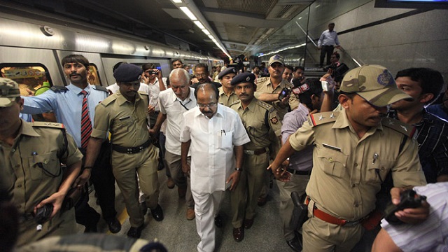 Moily took the metro to work on Wednesday as part of his ministry’s drive to promote fuel conservation and reduce India’s massive oil import bill.