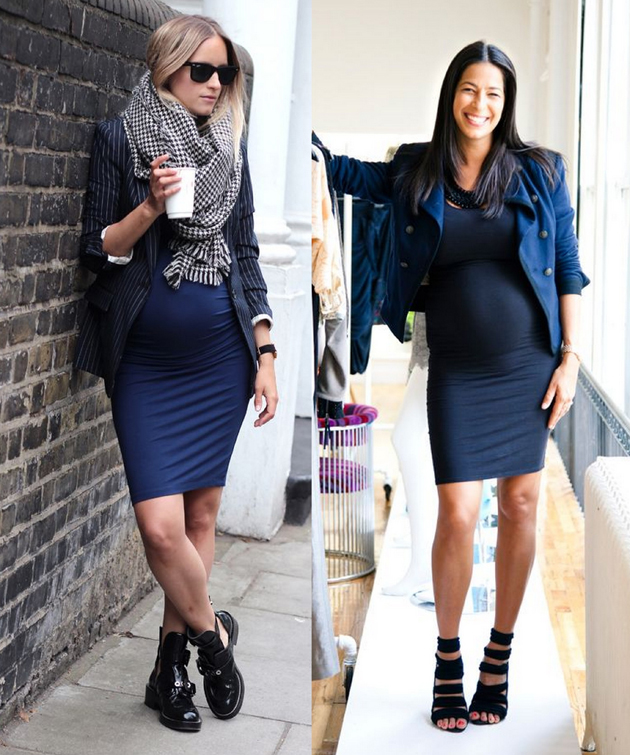 It becomes quite difficult to what to wear during office or for formal meetings when you are pregnant. You can wear some chic good fitted dresses. You can slip into this chic formal one piece and you team it with a jacket or a scarf to make it more elegant.