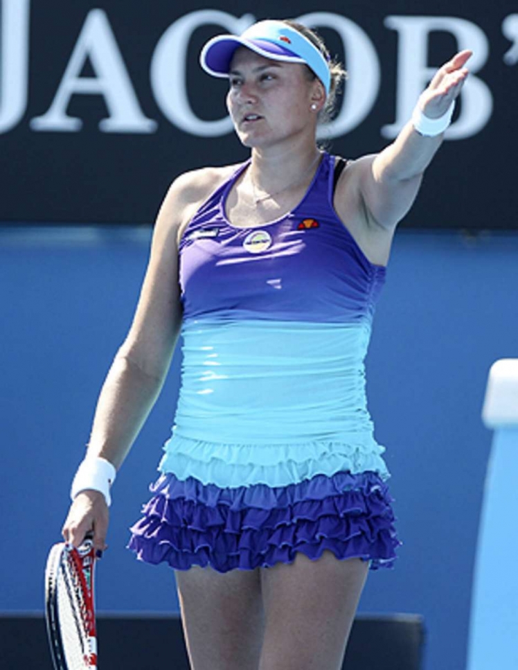 The Russian belle Nadia Petrova chose to wear this blue outfit at the 2011 Australian Open that made her appear as telling herself that she was in the cool waters rather than the warm climate Down Under.