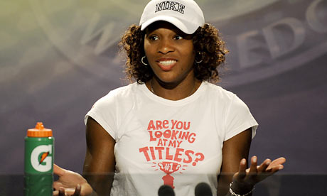 After beating her elder sister Venus in Wimbledon 2009 final, Serena Williams attended the press conference wearing a white t-shirt that read “Are you looking at my titles?”