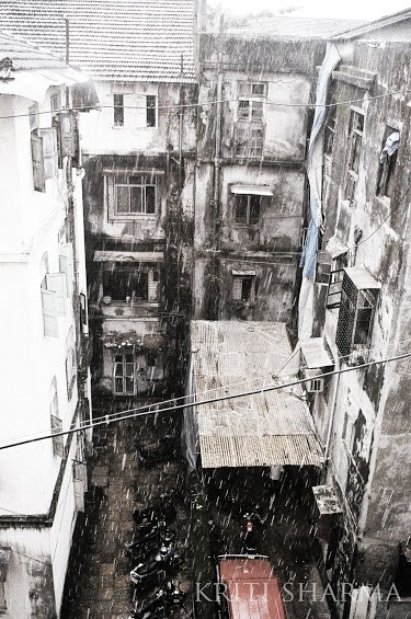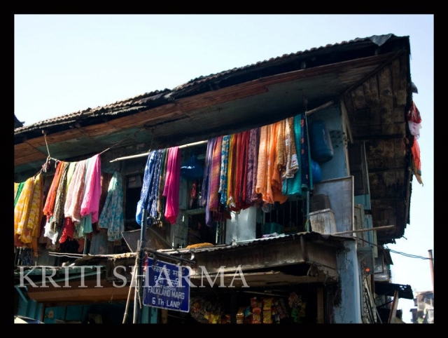 Once I was walking through one of the labyrinths around the Grant Road area when I saw this rundown house with so many colourful saris hanging out of its windows and found it really interesting.